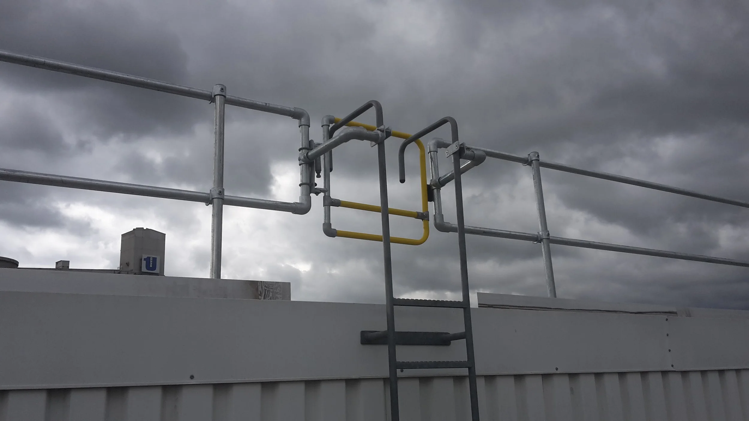 Bezpečnostní vrata a střešní zábradlí zajišťují bezpečné pracovní prostředí při práci ve výškách.